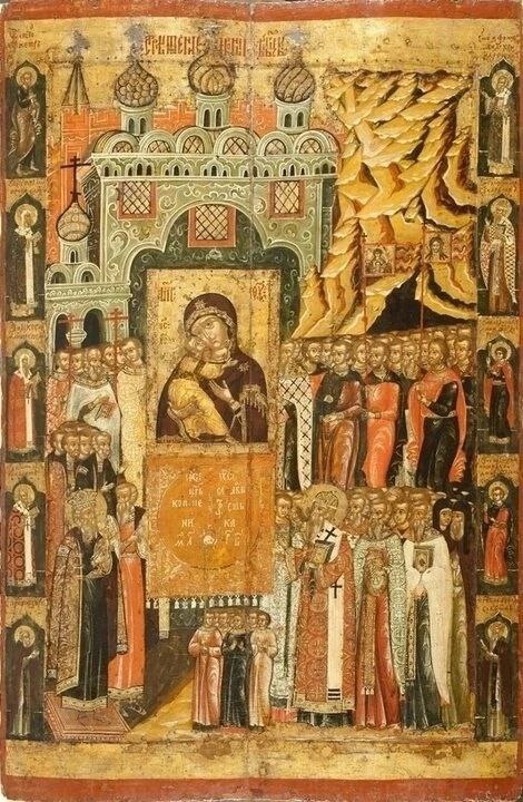 8 сентября/26 августа--Сретение Владимирской иконы Пресвятой Богородицы (празднество установлено в память спасения Москвы от нашествия Тамерлана в 1395 году)
