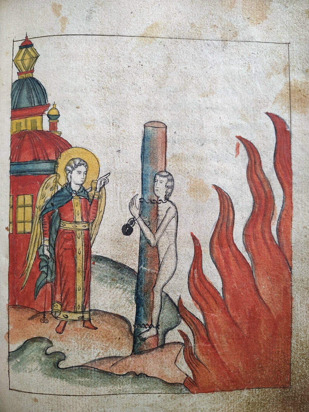 Между же блаженнаго рая, и страшнаго пламене умершии муж привязан стояше